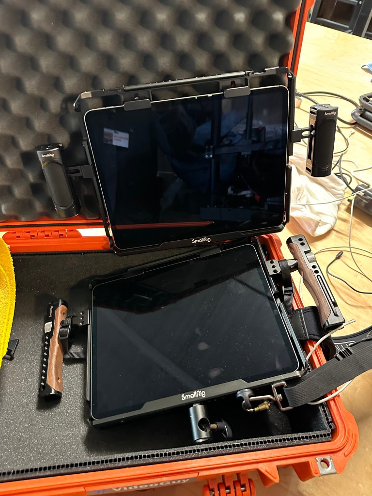 You cannot have an arsenal of wireless transmission systems without having the wireless monitors to accompany them. Indeed, VideoGuys does have it all! We have an ample supply of Ipads to go along with our many Qtake carts. As you can see, the director of photography and director themselves use these as a must have tool to get their job done in the best way possible. With little or no delay these wireless monitor setups are guaranteed to help productions get through their day in a timely manner. We have more than just Ipads for Qtake; we also have several Teredek wireless monitor rigs, along with a long-range Cinevue microwave handheld (for when the Teredek just isn’t enough) and several DJI handheld monitor setups that can be used for both short range and the longer ranges too.